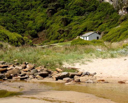 Melanesia Beach is a true gem. Off the beaten track and not visited by many people. Spend a bit of time here and take it all in, especially the old beach cottage which has been here for a long time. But please note that the cottage is private property and you should enjoy from afar. The owners are often at home and too many uninvited guests can become burdensome. This is probably the most difficult walking along the entire Great Ocean Walk. From Melanesia Beach it’s up and down all the way and pretty much a roller coaster ride until you reach Ryan’s Den.
