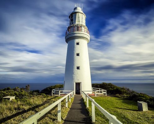 This walk should begin with a cuppa at Cape Otway Lightstation which by the way is well worth a look around. Once you get going you’ll be walking through sand dunes, coastal scrub and along cliff tops. You have two options here: The beach route which will take you to Rainbow Falls or the cliff top walk which takes you to the Escarpment Lookout. From here follow the grassy track to the banks of the Aire River and then follow the 4WD sand track until you reach the bridge. The walk then takes you past the Aire River Day Visitor Area and the Aire River West Camp Ground toilets.